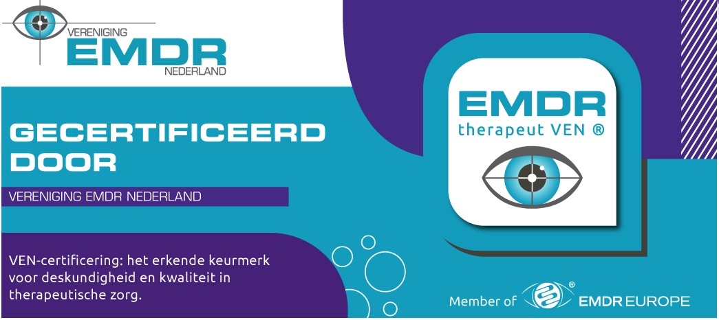 – Bij het Vereniging EMDR Nederland (VEN) ben ik geregistreerd als EMDR Europe Practitioner en Supervisor EMDR, zowel voor volwassenen als kinderen/ jeugd.